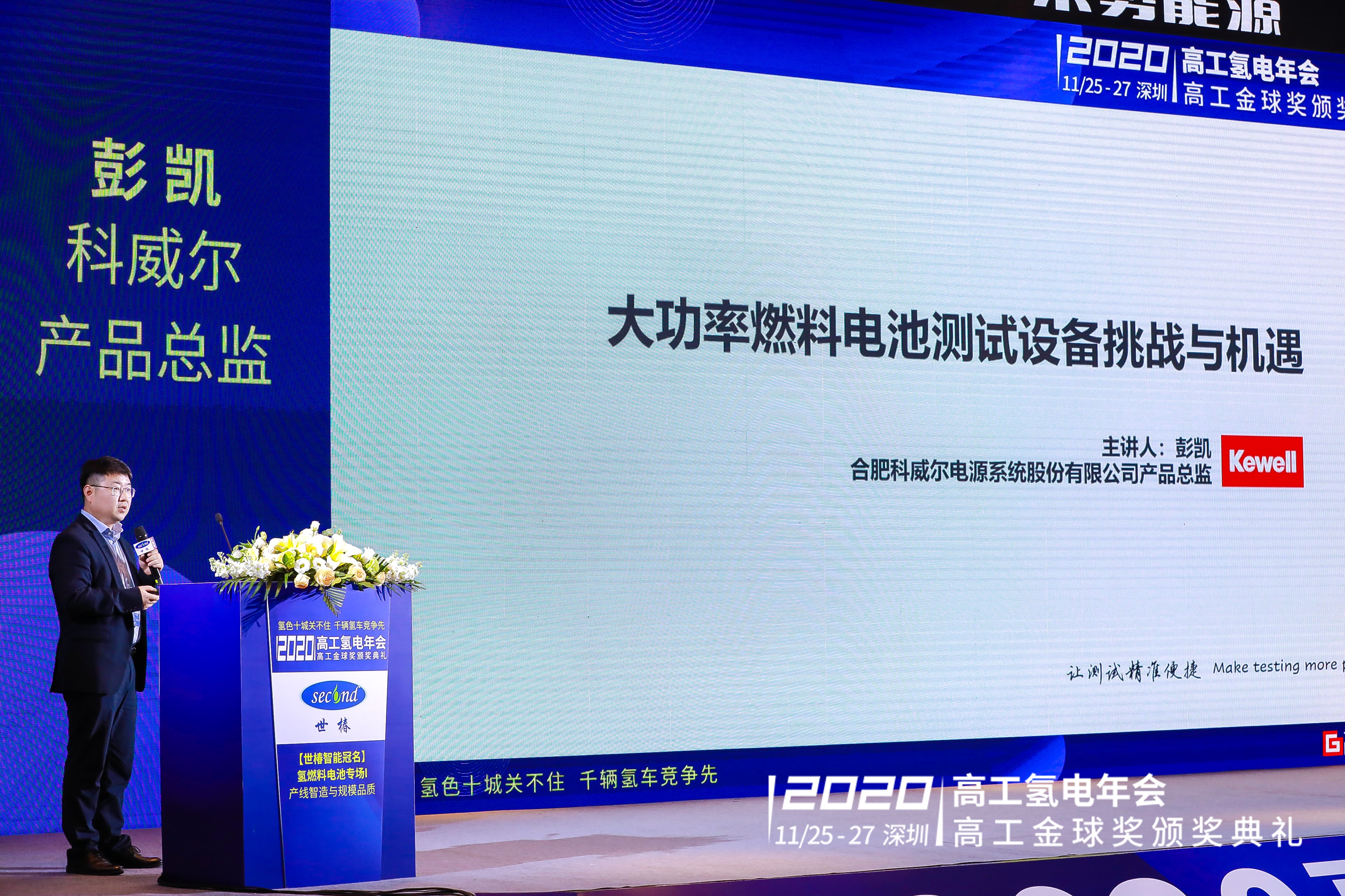 在11月26日上午氢燃料电池专场I:产线智能与规模品质,合肥乐鱼电源系统股份有限公司产品总监彭凯发表了“大功率燃料电池测试设备挑战与机遇”主题演讲。彭凯认为,要匹配大功率燃料电池电堆及发动机,测试设备需要有稳定可靠的大流量气体的加湿加温控制;精准快速的大流量范围气体的背压控制和快速稳定的大功率散热控制,并且加强安全可靠性设计,提升操作的便捷性。