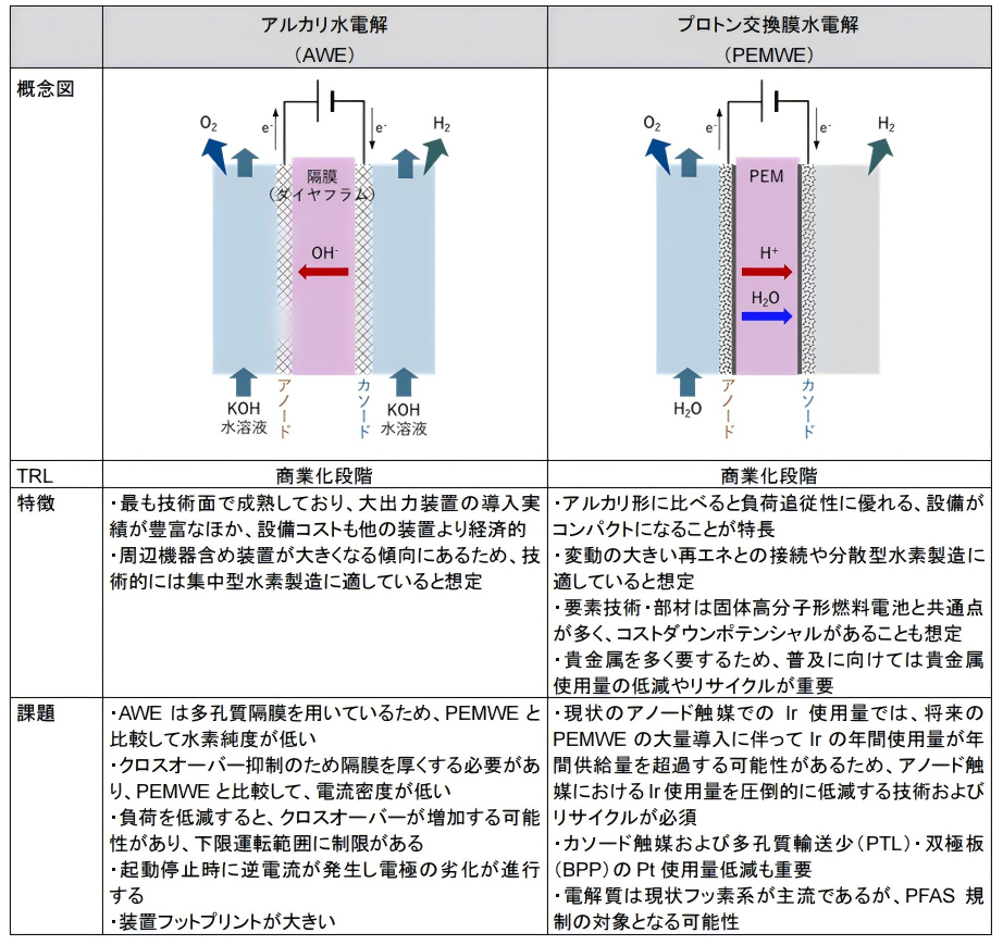表2-2 水电解种类的特征(AEMWE·SOEC)