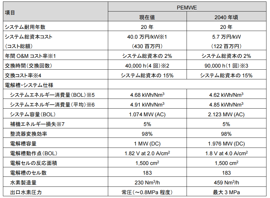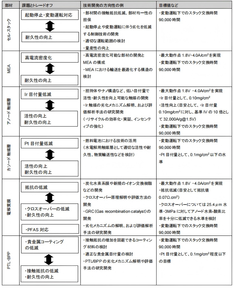 表1.5.3-2 提高水电解系统性能、耐久性的前提条件(PEMWE)
